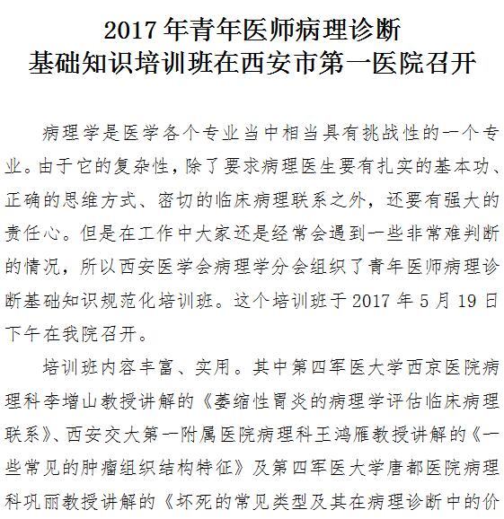 2017年青年医师病理诊断基础知识培训班在啄木鸟 召开