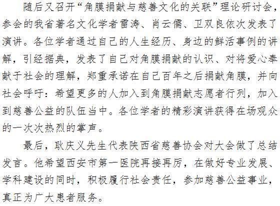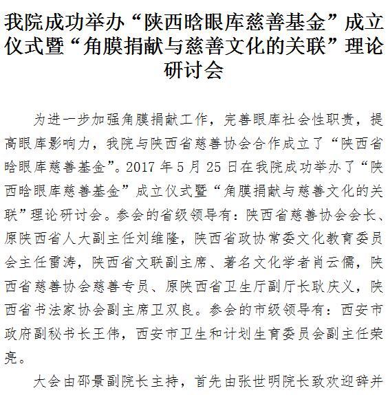 成功举办“陕西晗眼库慈善基金”成立仪式暨“角膜捐献与慈善文化的关联”理论研讨会