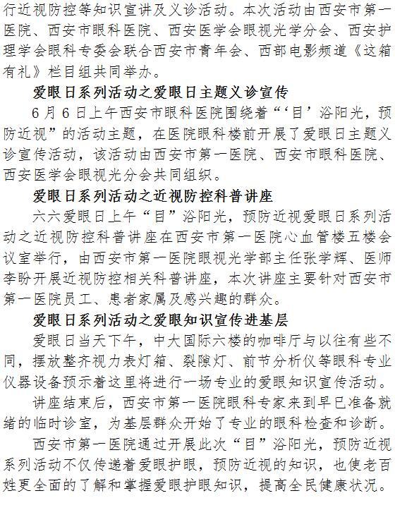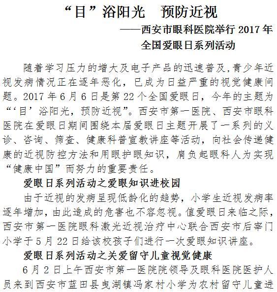 西安市眼科医院2017年全国爱眼日系列活动总结