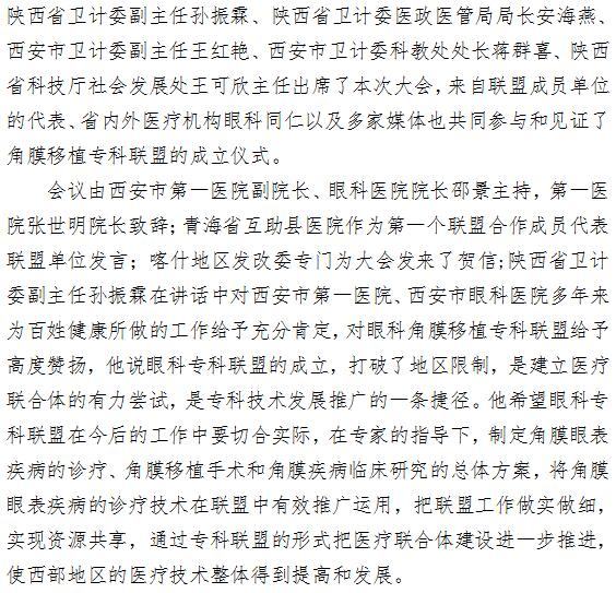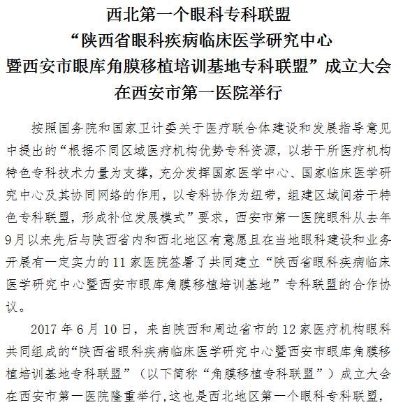 西北第一个眼科专科联盟成立大会在啄木鸟 举行