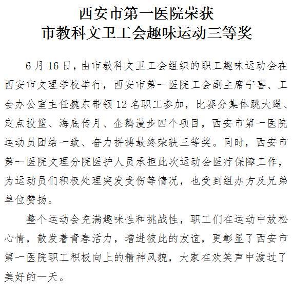 啄木鸟 荣获市教科文卫工会趣味运动三等奖