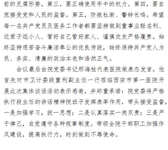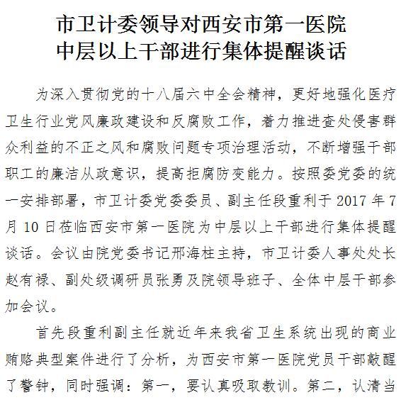 市卫计委领导对啄木鸟 中层以上干部进行集体提醒谈话