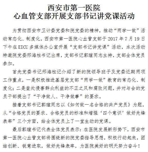 啄木鸟 心血管支部开展支部书记讲党课活动