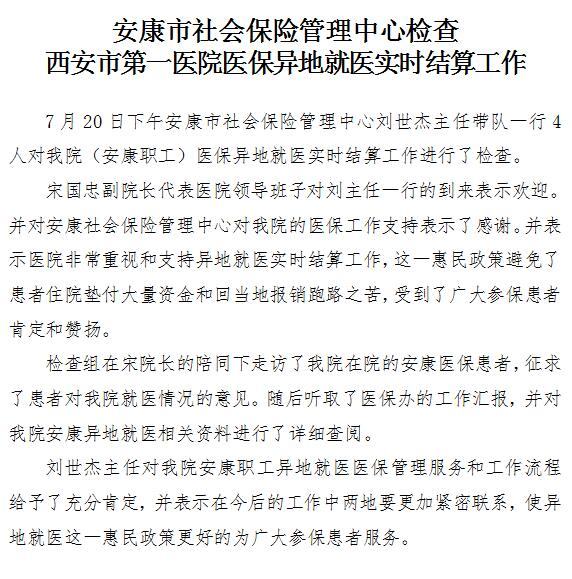 安康市社会保险管理中心检查啄木鸟 医保异地就医实时结算工作