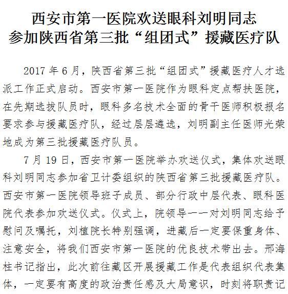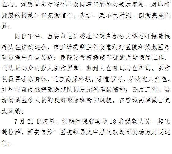 啄木鸟 欢送眼科刘明同志参加陕西省第三批“组团式”援藏医疗队