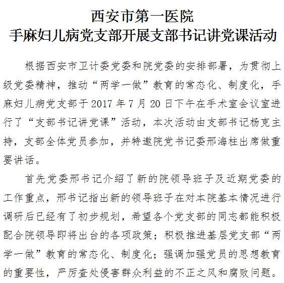 啄木鸟 手麻妇儿病党支部开展支部书记讲党课活动
