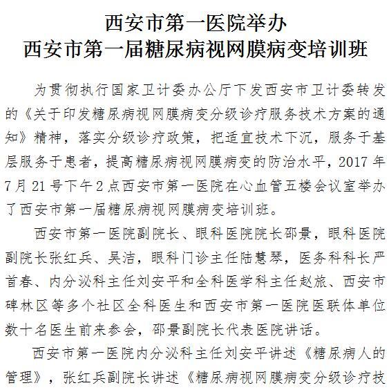 啄木鸟 举办西安市第一届糖尿病视网膜病变培训班