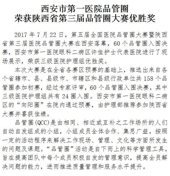 啄木鸟 品管圈荣获陕西省第三届品管圈大赛优胜奖