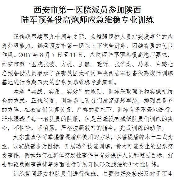 啄木鸟 派员参加陕西陆军预备役高炮师应急维稳专业训练