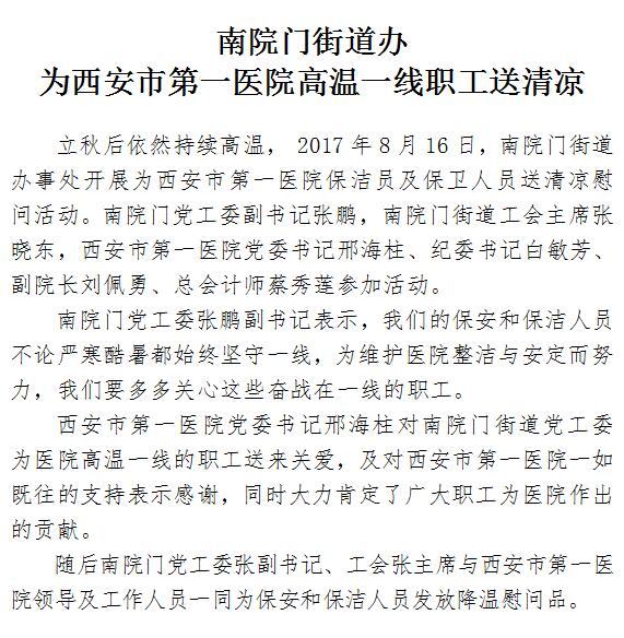 南院门街道办为啄木鸟 高温一线职工送清凉