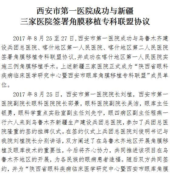 啄木鸟 成功与新疆三家医院签署角膜移植专科联盟协议