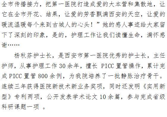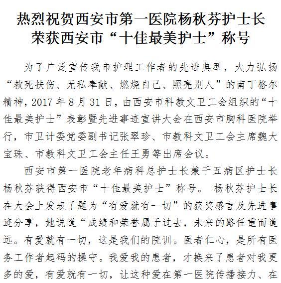 热烈祝贺啄木鸟 杨秋芬护士长荣获西安市“十佳最美护士”称号