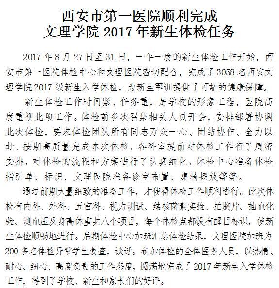 啄木鸟 顺利完成文理学院2017年新生体检任务