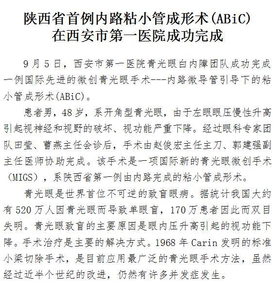 陕西省首例内路粘小管成形术(ABiC)在啄木鸟 成功完成