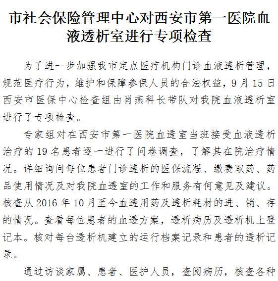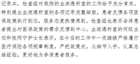 市社会保险管理中心对啄木鸟 血液透析室进行专项检查