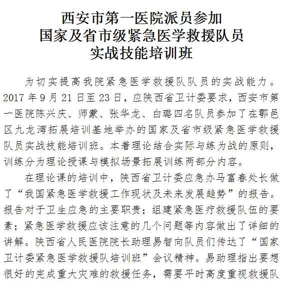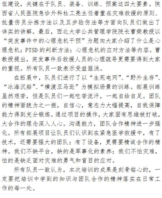 啄木鸟 派员参加国家及省市级紧急医学救援队员实战技能培训班