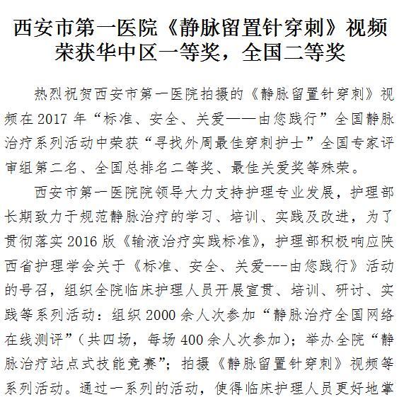 啄木鸟 《静脉留置针穿刺》视频荣获华中区一等奖、全国二等奖