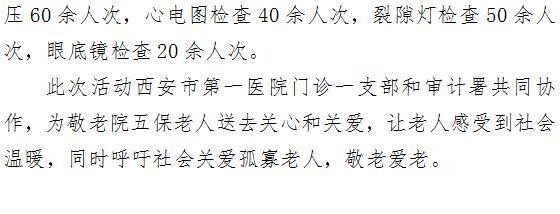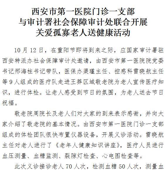 啄木鸟 门诊一支部与审计署社会保障审计处联合开展关爱孤寡老人送健康活动