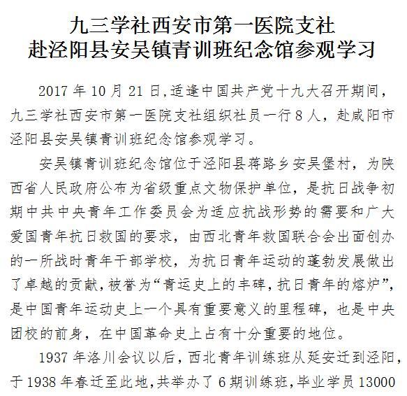 九三学社啄木鸟 支社赴泾阳县安吴镇青训班纪念馆参观学习