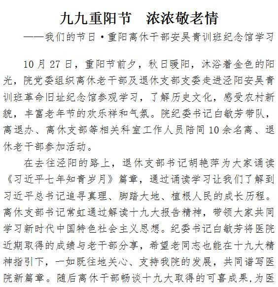 九九重阳节 浓浓敬老情——我们的节日·重阳离休干部安吴青训班纪念馆学习