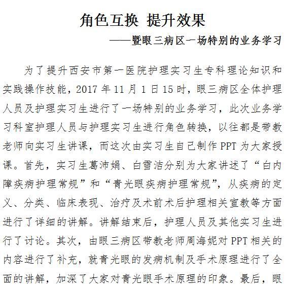 角色互换 提升效果 ——暨眼三病区一场特别的业务学习