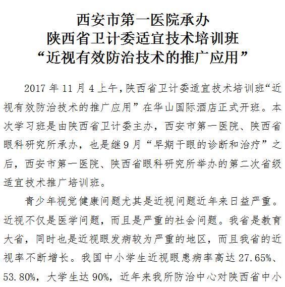 啄木鸟 承办陕西省卫计委适宜技术培训班 “近视有效防治技术的推广应用”