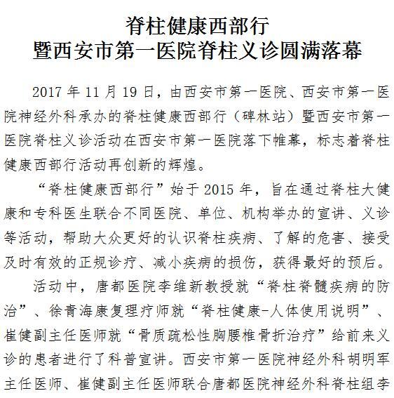 脊柱健康西部行暨啄木鸟 脊柱义诊圆满落幕