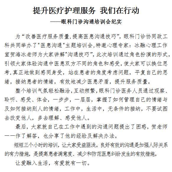 提升医疗护理服务 我们在行动——眼科门诊沟通培训会纪实