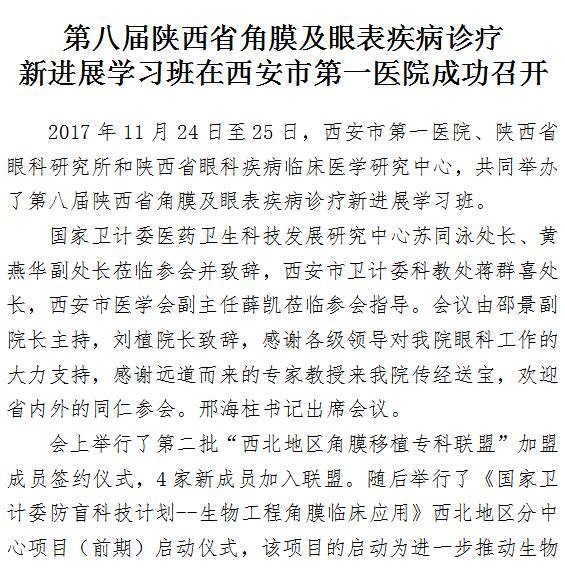 第八届陕西省角膜及眼表疾病诊疗新进展学习班在啄木鸟 成功召开