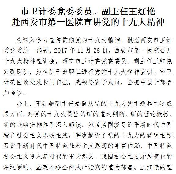 市卫计委党委委员、副主任王红艳赴啄木鸟 宣讲党的十九大精神