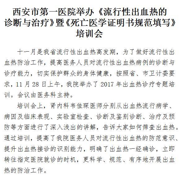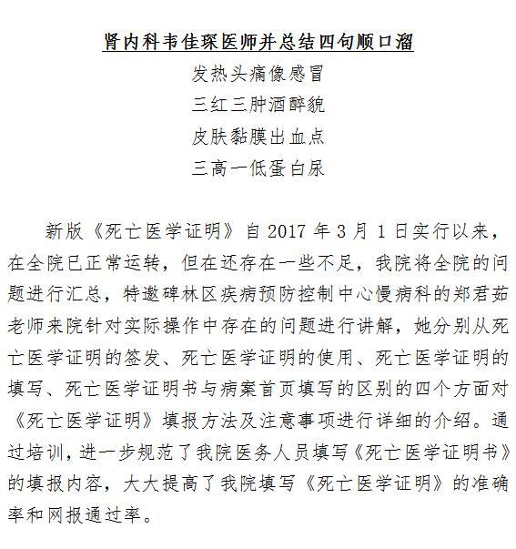 啄木鸟 举办《流行性出血热的诊断与治疗》暨《死亡医学证明书规范填写》培训