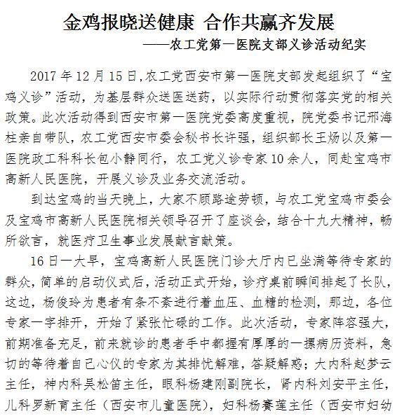 金鸡报晓送健康 合作共赢齐发展 ——农工党第一医院支部义诊活动纪实