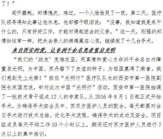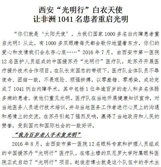 西安“光明行”白衣天使让非洲1041名患者重启光明