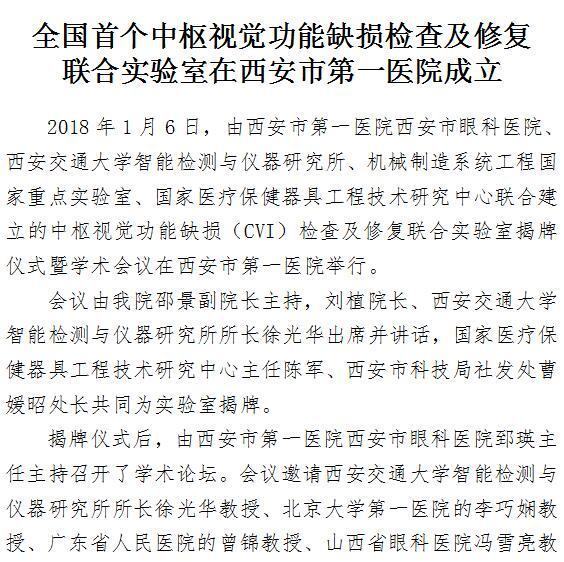 全国首个中枢视觉功能缺损检查及修复联合实验室在啄木鸟 成立