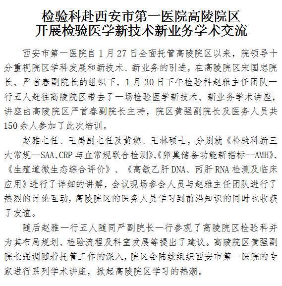 检验科赴啄木鸟 高陵院区开展检验医学新技术新业务学术交流