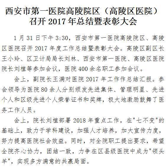 啄木鸟 高陵院区(高陵区医院)召开2017年总结暨表彰大会