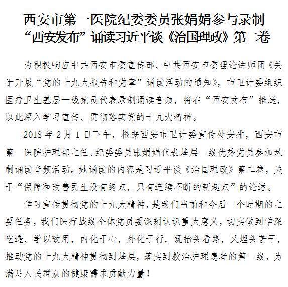 啄木鸟 纪委委员张娟娟参与录制“西安发布”诵读习近平谈《治国理政》第二卷