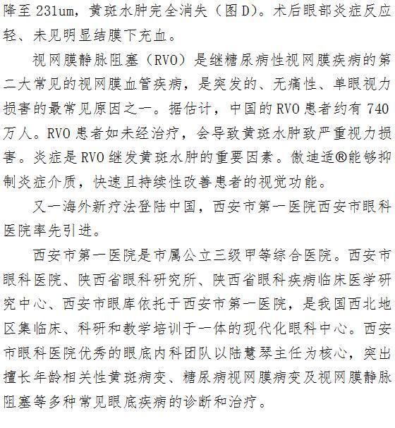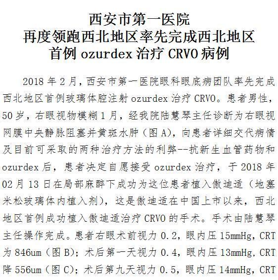 啄木鸟 再度领跑西北地区率先完成西北地区首例ozurdex治疗CRVO病例