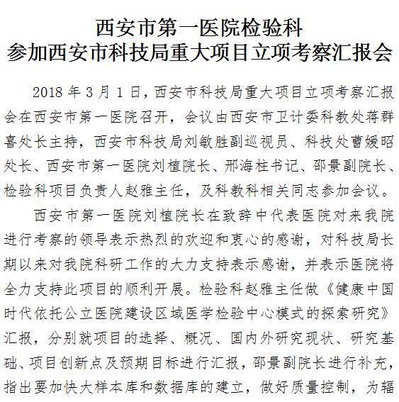 啄木鸟 检验科参加西安市科技局重大项目立项考察汇报会
