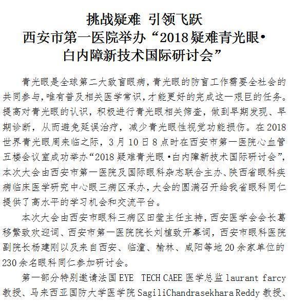 挑战疑难 引领飞跃——啄木鸟 举办“2018疑难青光眼? 白内障新技术国际研讨会”