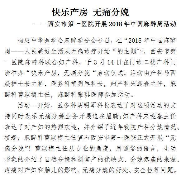 快乐产房 无痛分娩 ——啄木鸟 开展2018年中国麻醉周活动