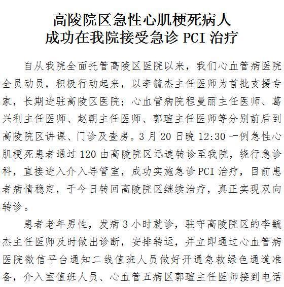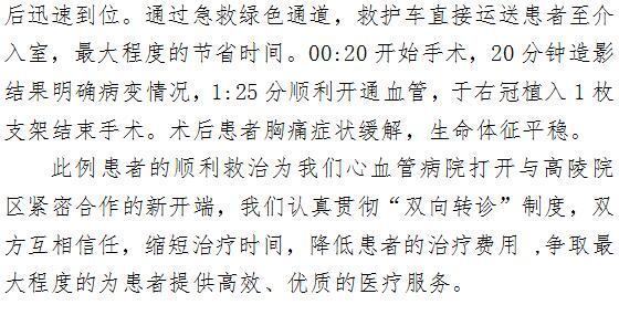 高陵院区急性心肌梗死病人成功在啄木鸟 接受急诊PCI治疗