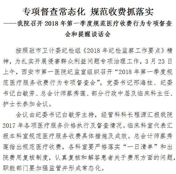 啄木鸟 召开2018年第一季度规范医疗收费行为专项督查会和提醒谈话会