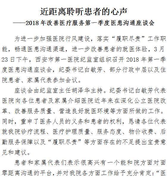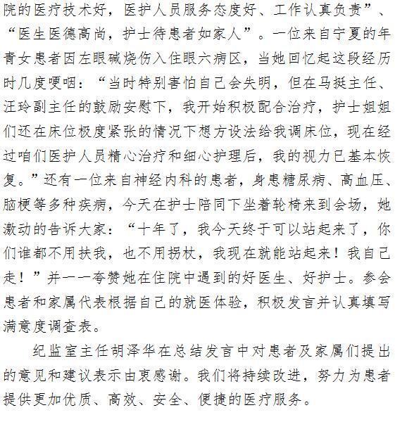 近距离聆听患者的心声 ——2018年改善医疗服务第一季度医患沟通座谈会