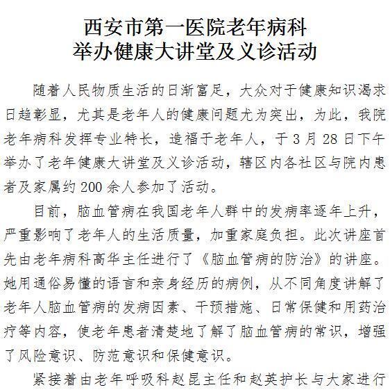 啄木鸟 老年病科举办健康大讲堂及义诊活动