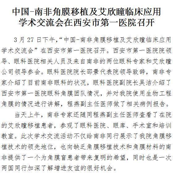 中国-南非角膜移植及艾欣瞳临床应用学术交流会在啄木鸟 召开
