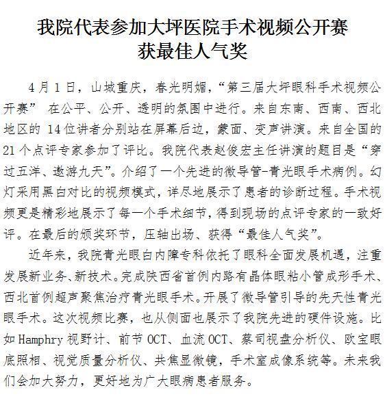 啄木鸟 代表参加大坪医院手术视频公开赛获最佳人气奖