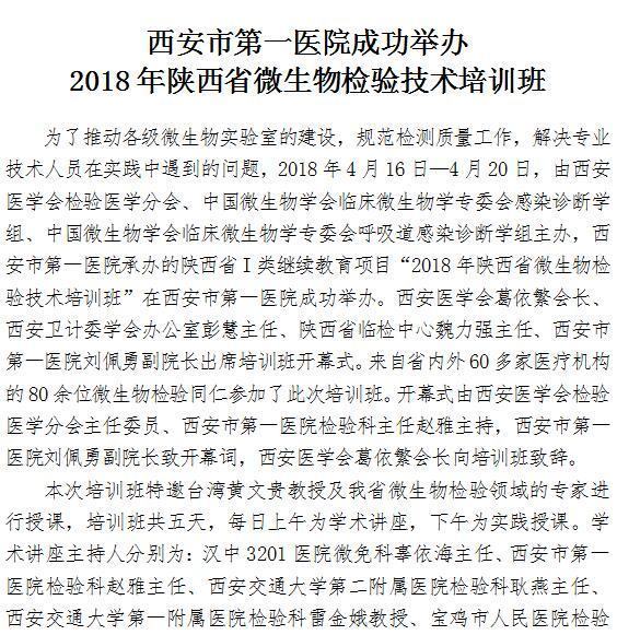 啄木鸟 成功举办2018年陕西省微生物检验技术培训班