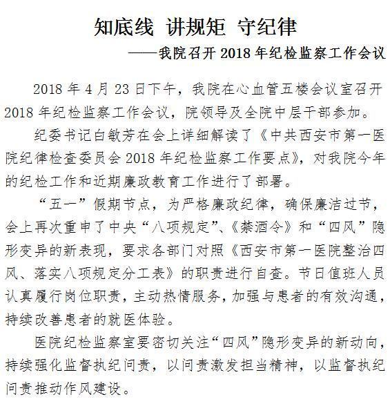 知底线 讲规矩 守纪律 ——啄木鸟 召开2018年纪检监察工作会议