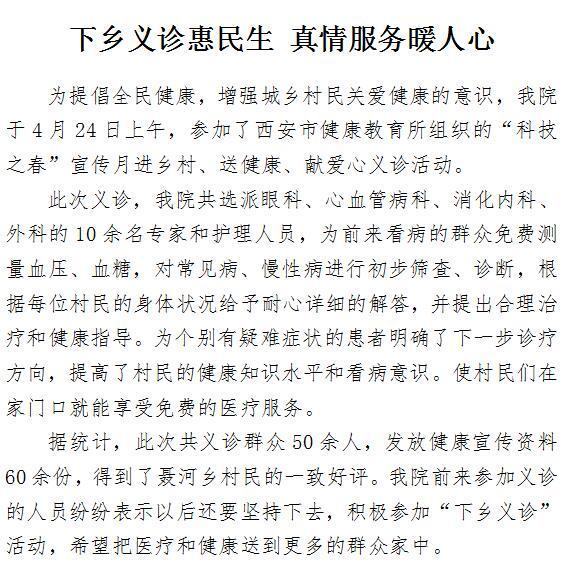 下乡义诊惠民生 真情服务暖人心